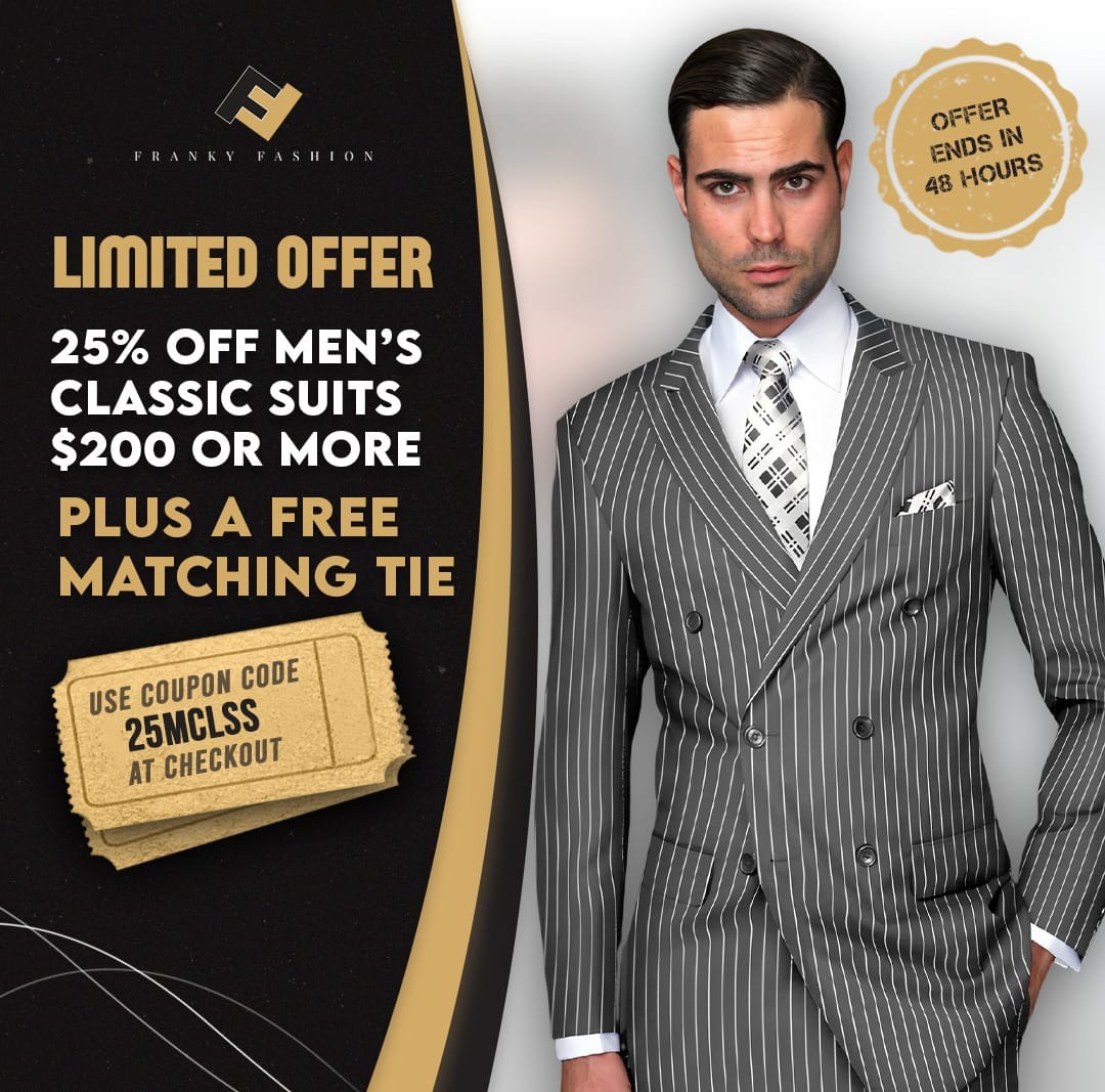 FREE TIE + TIECLIP + SOCKS WITH THE PURCHASE OF ANY SUIT $250+