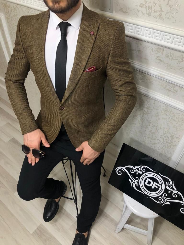 Men’s Brown solid 3pc suit regular fit pleated pants double‑breasted vest super 150’s italian wool STATEMENT SUITS ZARELLI