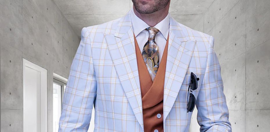 Men’s copper solid 3pc suit modern fit wide‑leg pants double‑breasted vest super 180’s italian wool STATEMENT SUITS FLORENCE