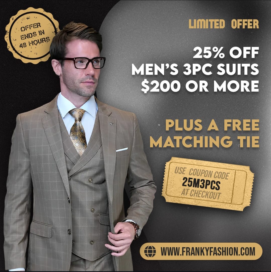 FREE TIE + TIECLIP + SOCKS WITH THE PURCHASE OF ANY SUIT $250+