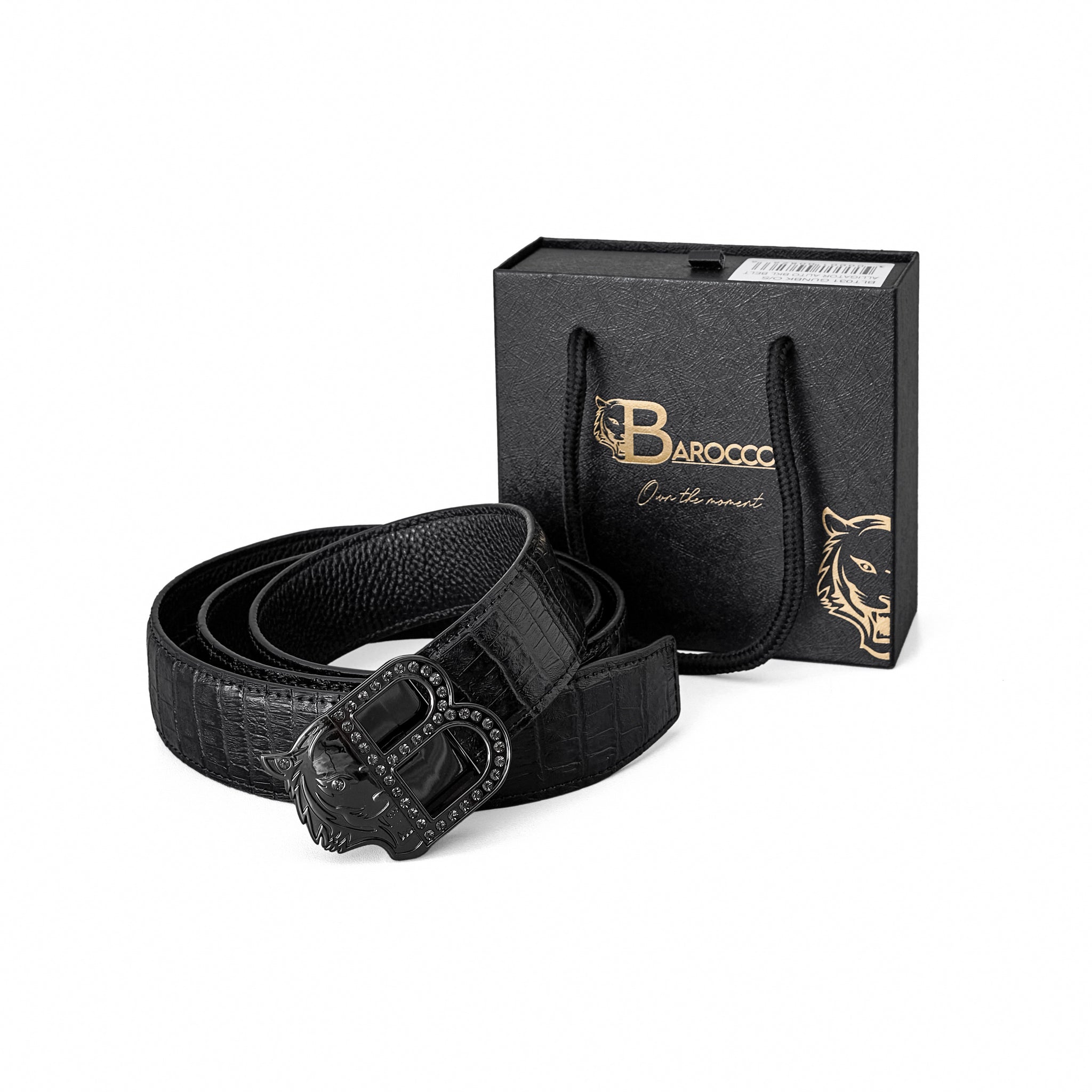 Croc-Embossed Leather Auto BKL Belt – Blackout Ed. GUN/BLACK
