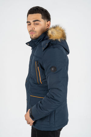 Men’s Navy pinstripe double-breasted suit regular fit pleated pants super 150’s italian wool STATEMENT SUITS DB-ZARELLI