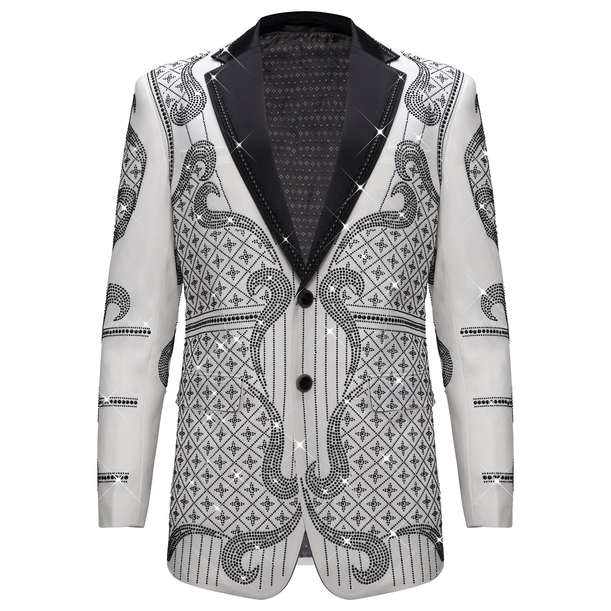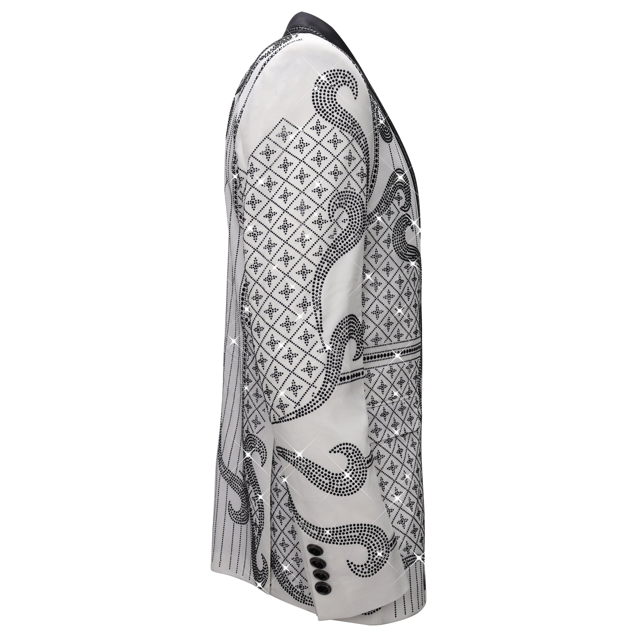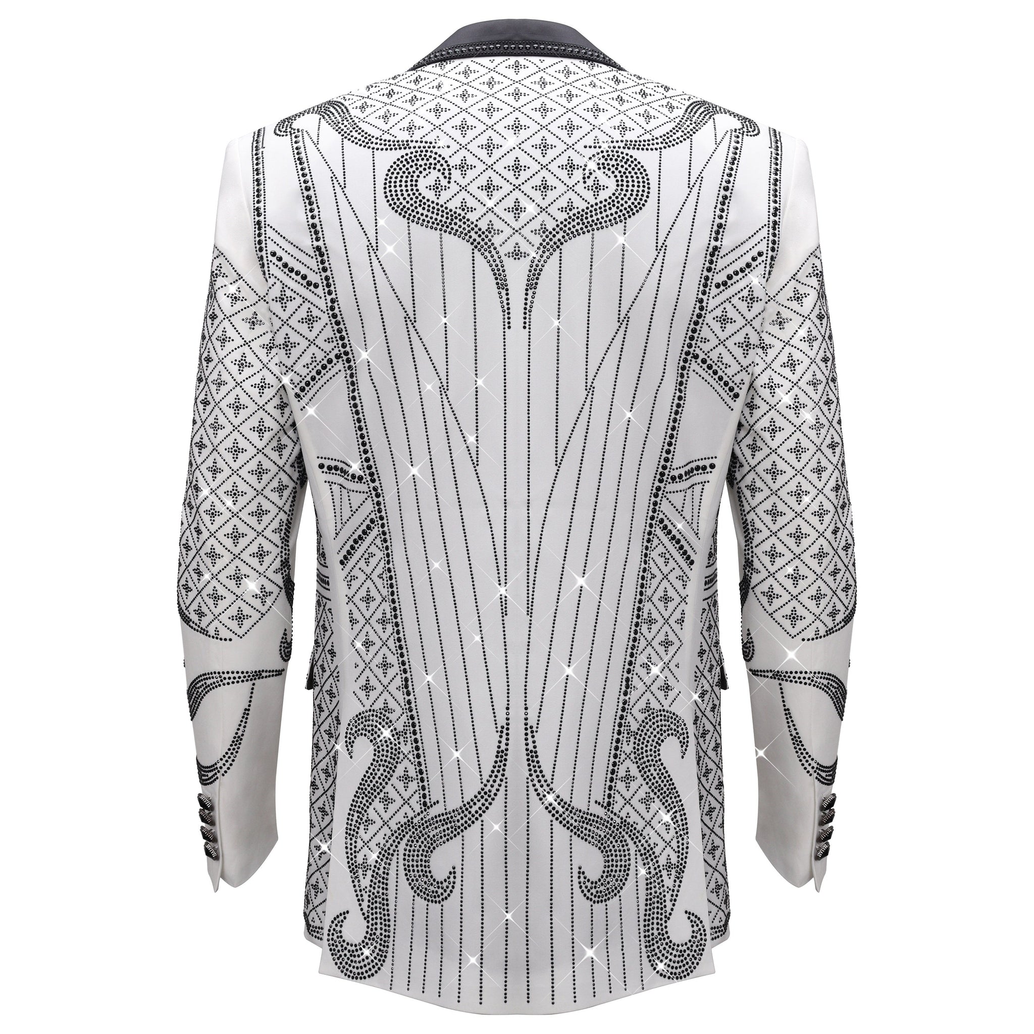 Exude sophistication with the Timeless Tailor blazer, a striking piece designed for those who embrace elegance with a bold twist. This meticulously crafted blazer features intricate black embellishments across a crisp silhouette, paired with a sleek satin shawl lapel that enhances its luxury appeal. Perfect for formal events, performances, or any occasion where making an impression is essential, this blazer blends classic tailoring with modern artistry for a look that commands attention.