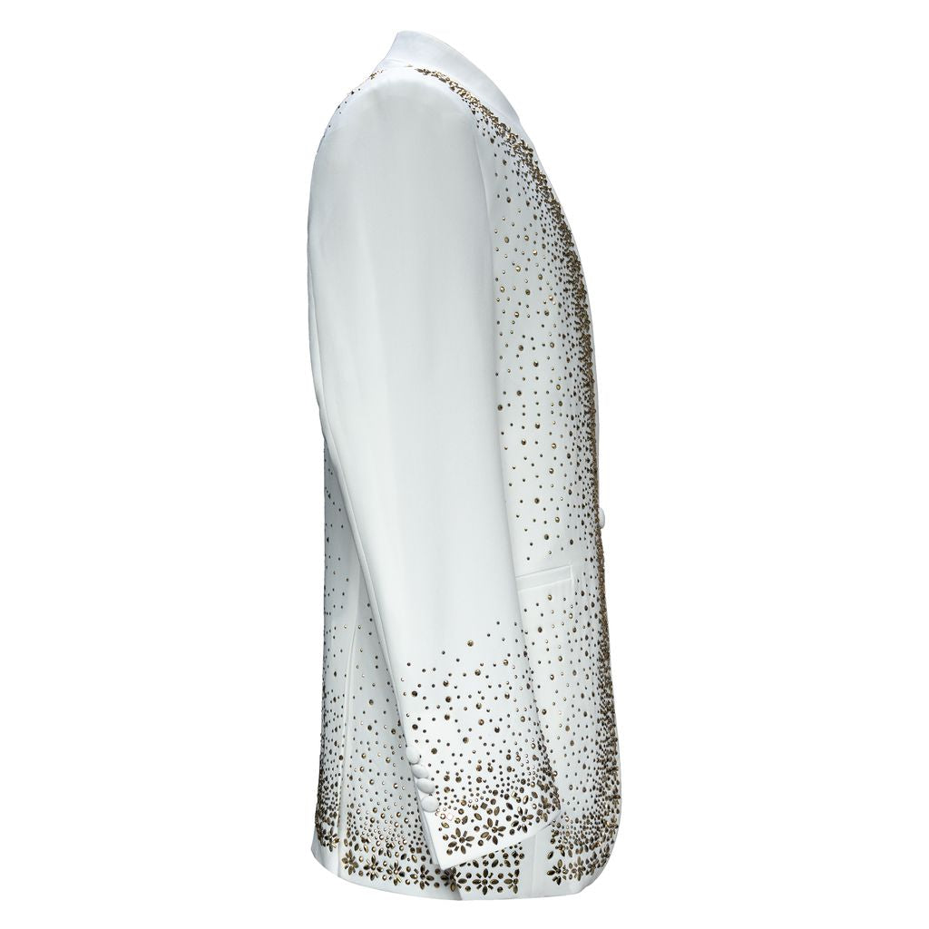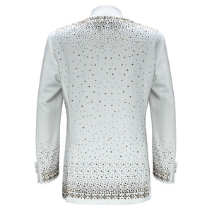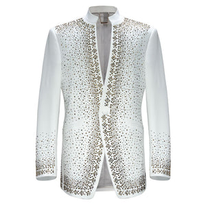 Shine on every stage with the Bright Lights Blazer, a masterpiece designed for those who crave the spotlight. Fully embellished with shimmering rhinestones, this blazer dazzles with bling that commands attention on the red carpet, runway, or any event that requires a bold statement. The sleek mandarin collar adds a modern edge, while the stretch fabric ensures maximum comfort, making it perfect for singers, artists, and performers. Whether you’re stepping out for a premiere or taking center stage, the Bright Lights Blazer wraps you in luxury and style, offering the perfect blend of performance-ready ease and undeniable glamour.