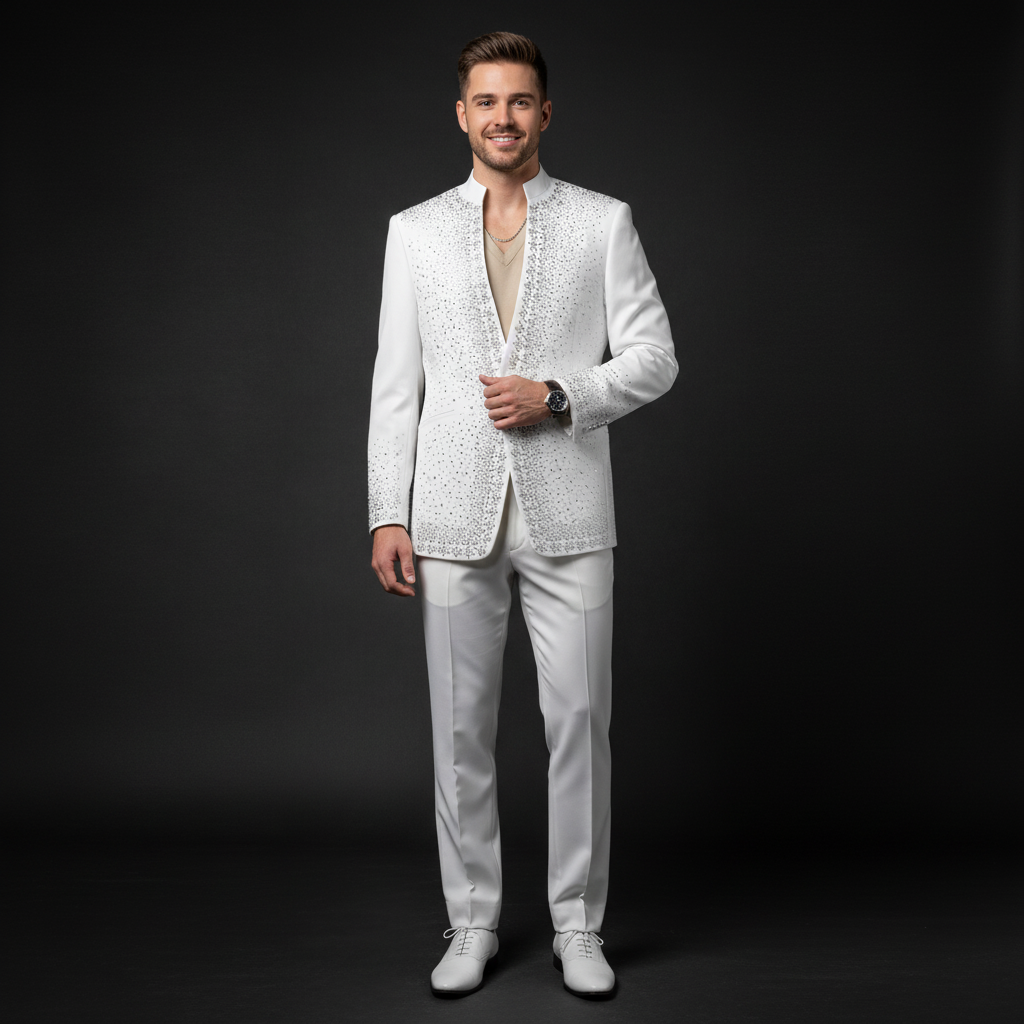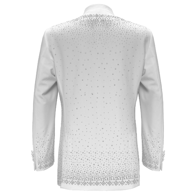 Shine on every stage with the Bright Lights Blazer, a masterpiece designed for those who crave the spotlight. Fully embellished with shimmering rhinestones, this blazer dazzles with bling that commands attention on the red carpet, runway, or any event that requires a bold statement. The sleek mandarin collar adds a modern edge, while the stretch fabric ensures maximum comfort, making it perfect for singers, artists, and performers. Whether you’re stepping out for a premiere or taking center stage, the Bright Lights Blazer wraps you in luxury and style, offering the perfect blend of performance-ready ease and undeniable glamour.