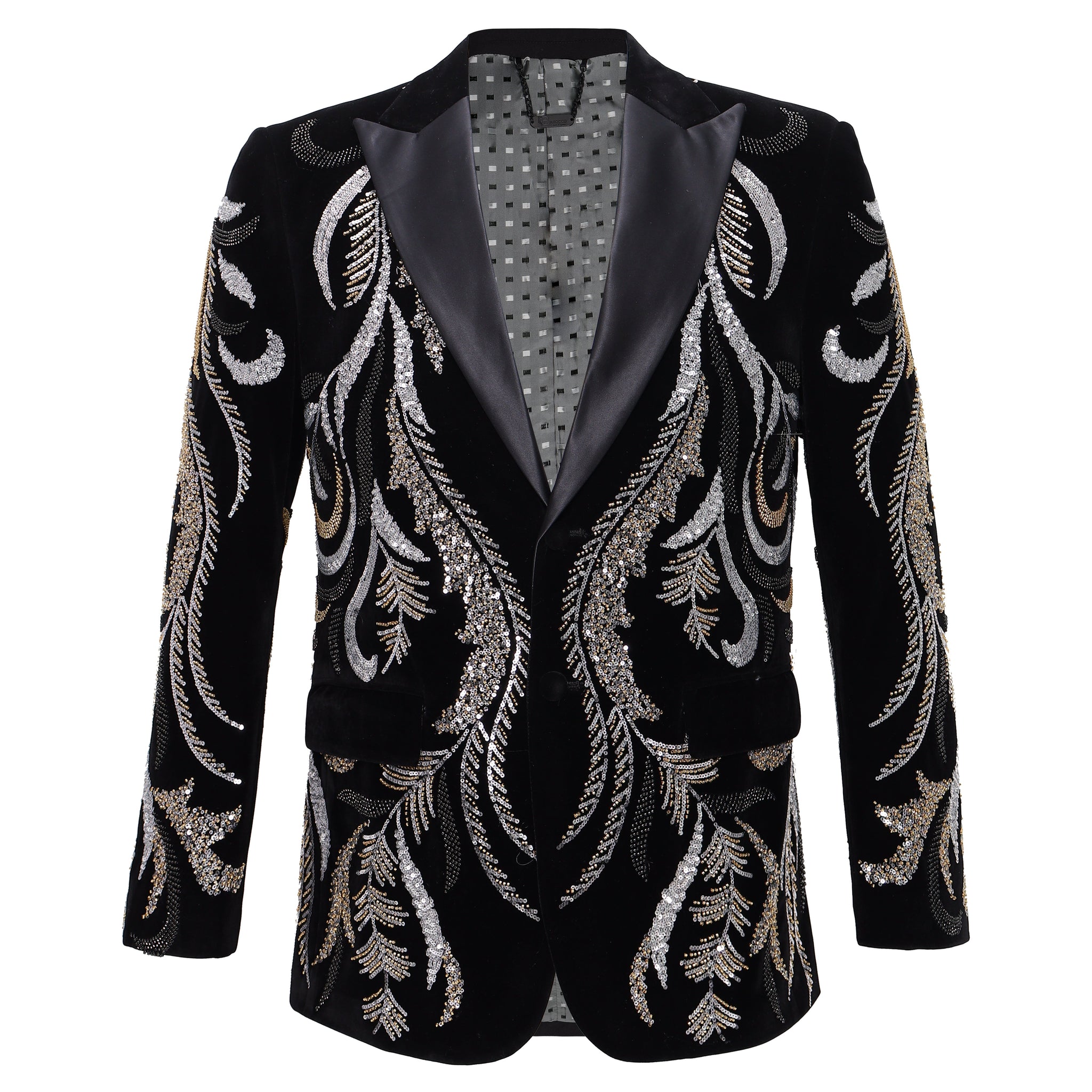 Make an unforgettable entrance with the Crystal Gold Blazer — a masterclass in opulence and artistry. Designed for those who refuse to go unnoticed, this blazer is adorned with lavish gold and silver crystal embroidery that shimmers against rich velvet. The satin peak lapel adds a touch of classic elegance, balancing boldness with refinement. Whether you're performing on stage, attending a gala, or hosting a high-profile event, this blazer delivers undeniable star power with every step.