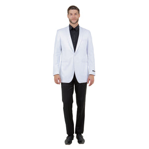 The Tazzio Modern Fit Blazer combines contemporary style with a classic tuxedo look, featuring a solid design, single-button front closure, and elegant shawl collar. With its modern fit and refined French-facing interior, this jacket offers a sharp, sophisticated silhouette. It includes two besom front pockets, three interior pockets for added convenience, and underarm sweat guards for enhanced comfort. Perfect for formal occasions or a polished everyday look, this blazer is a versatile addition to your wardrobe. (Jacket only)