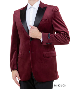 The Tazzio Men's Tuxedo Look Sport Coat exudes sophistication with its satin peak lapel and velvet fabric. Featuring slit chest pocket, two besom front pockets with flaps, and three interior pockets including a cell phone pocket, this sport coat balances style and practicality. The side vents, pic-stitching, and French facing add refined details, while the underarm sweat guards ensure comfort. Perfect for formal events or adding elegance to any outfit, this coat offers a classic tuxedo look with modern fit convenience.