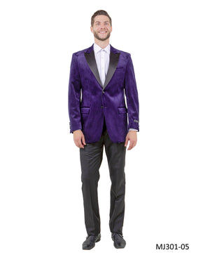 The Tazzio Men's Tuxedo Look Sport Coat exudes sophistication with its satin peak lapel and velvet fabric. Featuring slit chest pocket, two besom front pockets with flaps, and three interior pockets including a cell phone pocket, this sport coat balances style and practicality. The side vents, pic-stitching, and French facing add refined details, while the underarm sweat guards ensure comfort. Perfect for formal events or adding elegance to any outfit, this coat offers a classic tuxedo look with modern fit convenience.