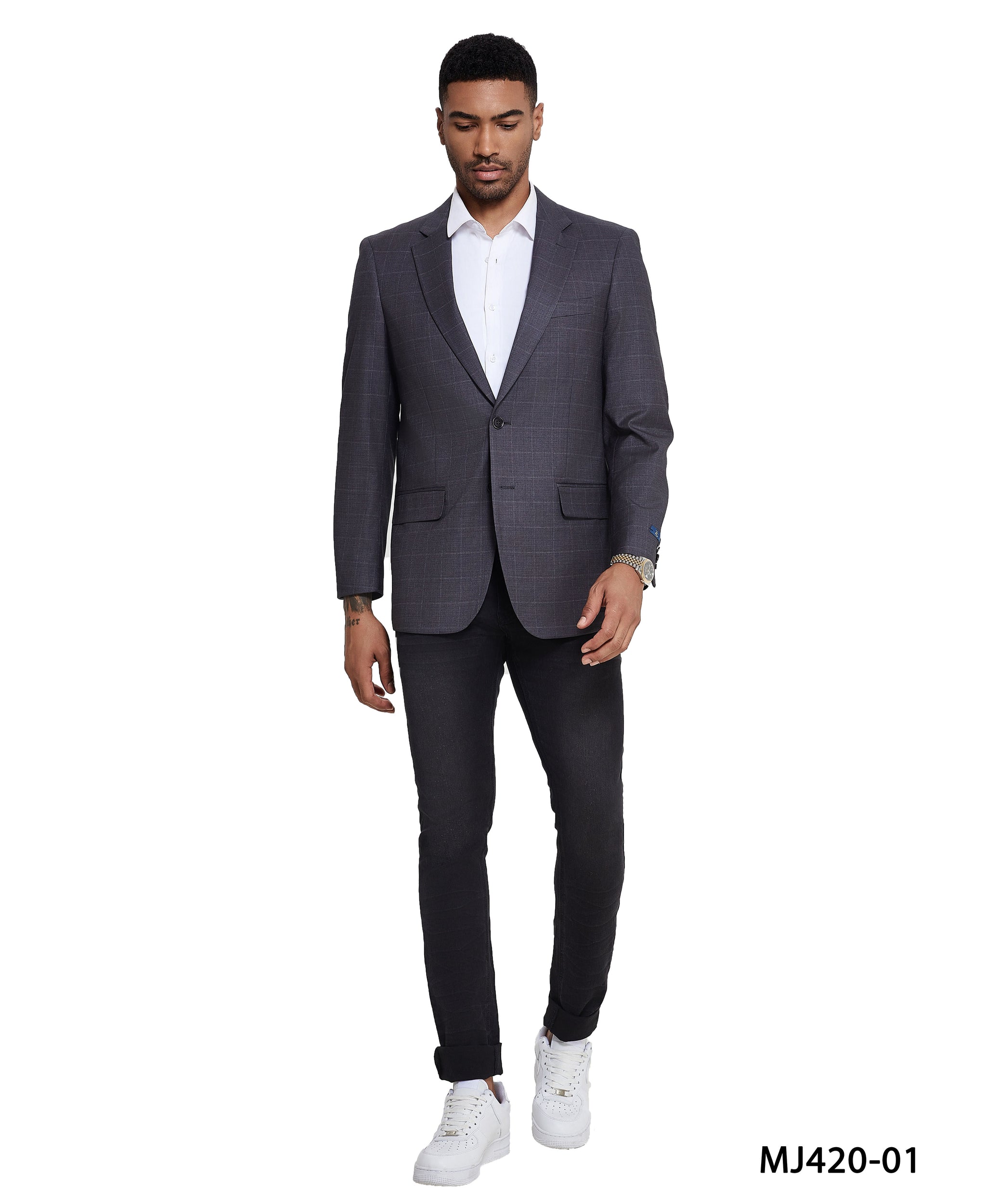 Men's Modern Fit Windowpane Sport Coat w/ Notch Lapel