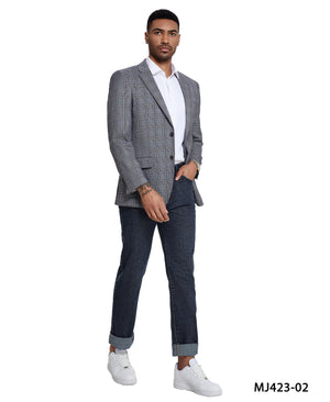Men's Modern Fit Windowpane Sport Coat w/ Notch Lapel