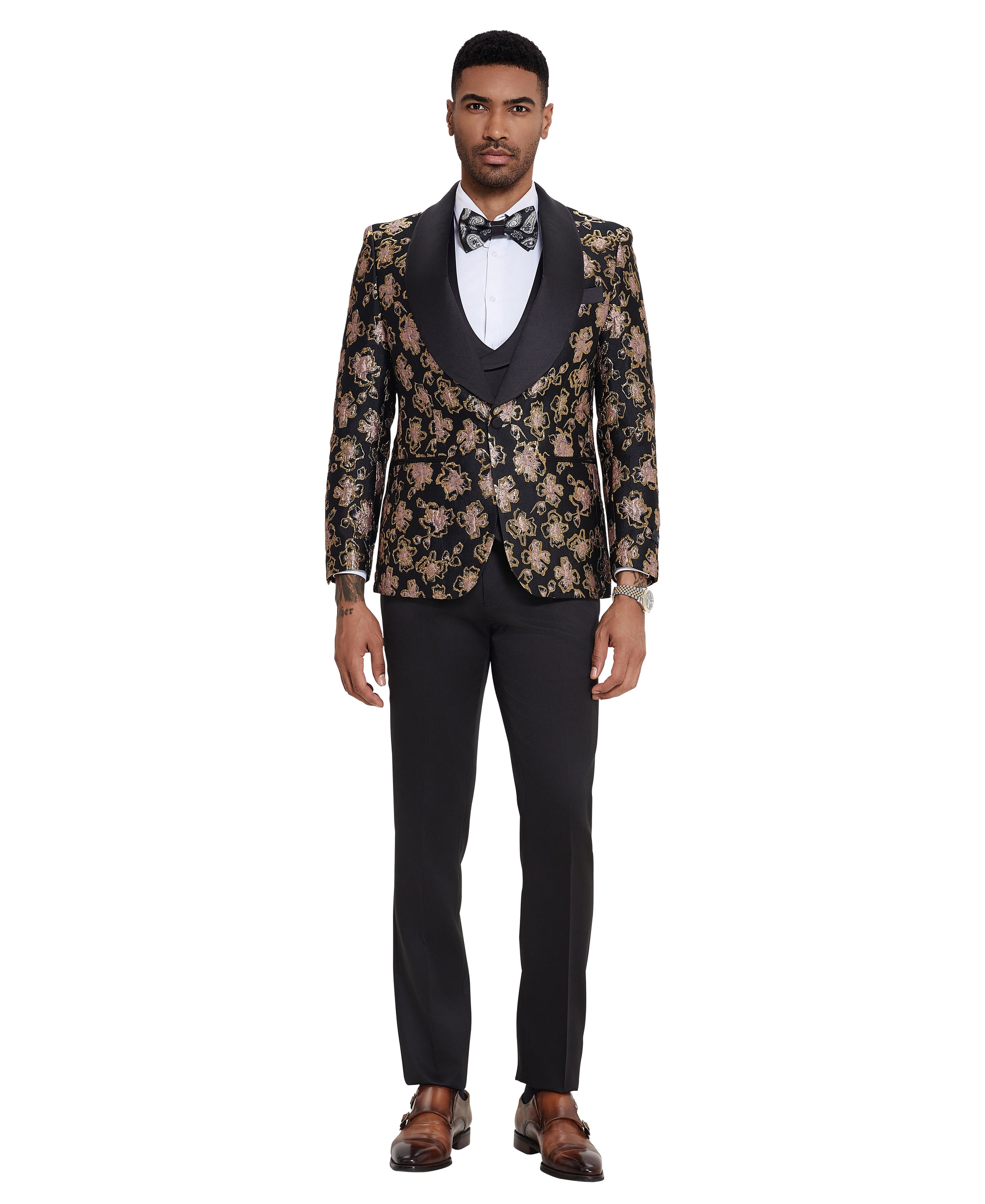 Ask about 3 PC Floral Satin Shawl Collar Double Breasted Suit