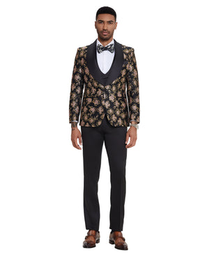 Black Gold 3 PC Satin Shawl Lapel Solid Suit