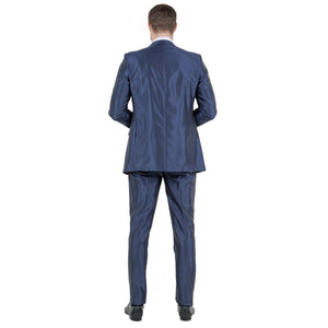 Elevate your formal attire with the Men's Tazio Slim-Fit 3pc Suit in Navy. Crafted with precision by Tazio, this ensemble exudes sophistication and style. The Solid Sharkskin jacket features a Slim Fit, Two Button Front Closure, Notch Lapel, and convenient Side Vents, while the vest adds a polished touch with its Five Button closure and V Neck design. Completing the look, the coordinating Solid Sharkskin pants offer a sleek Flat Front design, 37 Inch Inseam, and practical features like back besom pockets with button closure and front angled slip pockets. Perfect for weddings, galas, or formal business events, this suit guarantees a timeless and elegant appearance with every wear.