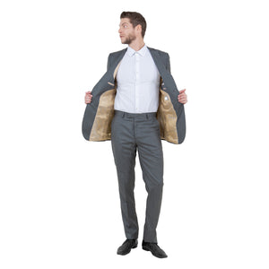 Step into refined elegance with the Tazzio Smoke Blue Men's 2pc Sharkskin Suit Slim-Fit, where sophistication meets modernity flawlessly. Crafted with precision, this suit features a sleek slim notch lapel, a two-button front closure, and underarm sweat guards for all-day comfort. Inside, discover an interior French facing and ample pockets for convenience. The flat-front pants boast the distinctive sharkskin pattern and practical features like two back besom pockets and two front angled slip pockets. Lined to the knee with a 37-inch inseam, they offer a tailored fit with a secure zip fly and extended button closure. Elevate your style effortlessly with this refined ensemble, perfect for making a statement at any occasion.