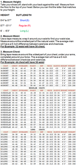 Shirts, Leather Jackets, Blazers and Pants Size Chart
