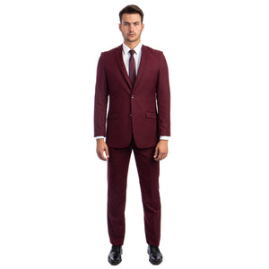 Crafted with precision, the Azzuro Men's Slim-Fit Polyester Suit 2-Piece in burgundy seamlessly blends traditional elegance with contemporary sophistication. The single-breasted jacket showcases a timeless notch lapel, two-button closure, and functional side flap pockets, while the slim-fit pants offer a sleek flat front design. Constructed from premium 100% polyester fabric, this ensemble delivers impeccable style and lasting comfort. Whether for business meetings or formal events, the Azzuro suit epitomizes effortless refinement, ensuring you make a memorable impression at every occasion.