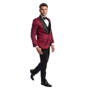 Ask about Burgundy Men's Hybrid-Fit 3pc Paisley Suit w/ Wide Black Shawl Collar