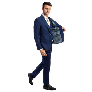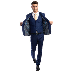 Experience sophistication with the Sean Alexander Men's Skinny-Fit Suit 3pc in Solid Indigo, a refined ensemble exuding elegance and attention to detail. The jacket, boasting a two-button front closure and notch lapel, pairs seamlessly with the V-neck vest featuring a four-button closure and two slit pockets. Completing the ensemble, the flat-front pants offer modern sophistication with two back besom pockets and a lined interior to the knee. Crafted for formal events or professional settings, this suit guarantees a flawless fit and timeless style, ensuring you radiate confidence and sophistication wherever you go.