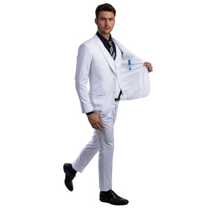 Experience sophistication with the Sean Alexander Men's Skinny-Fit Suit 3pc in Solid White, a refined ensemble exuding elegance and attention to detail. The jacket, boasting a two-button front closure and notch lapel, pairs seamlessly with the V-neck vest featuring a four-button closure and two slit pockets. Completing the ensemble, the flat-front pants offer modern sophistication with two back besom pockets and a lined interior to the knee. Crafted for formal events or professional settings, this suit guarantees a flawless fit and timeless style, ensuring you radiate confidence and sophistication wherever you go.