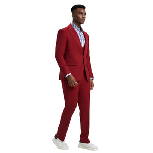 Experience timeless sophistication with the Stacy Adams Hybrid-Fit 3pc Suit Set in deep cherry, meticulously crafted for the modern gentleman. The solid cherry jacket boasts a two-button front closure, peak lapel, and underarm sweat guards, ensuring both style and comfort. Complementing the ensemble, the cherry U-shaped vest features a four-button closure for added refinement. The flat-front cherry pants, complete with an expandable waistband and functional pockets, offer unparalleled versatility. Available in slim-fit sizes 36-44 and modern-fit sizes 46-62, this cherry suit set caters to diverse preferences, promising a tailored look for every occasion. Unleash your confidence and sophistication with the Stacy Adams Hybrid-Fit 3pc Suit Set in cherry.