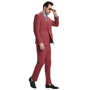 Experience timeless sophistication with the Stacy Adams Hybrid-Fit 3pc Suit Set in vibrant coral, meticulously crafted for the modern gentleman. The solid coral jacket boasts a two-button front closure, peak lapel, and underarm sweat guards, ensuring both style and comfort. Complementing the ensemble, the coral U-shaped vest features a four-button closure for added refinement. The flat-front coral pants, complete with an expandable waistband and functional pockets, offer unparalleled versatility. Available in slim-fit sizes 36-44 and modern-fit sizes 46-62, this coral suit set caters to diverse preferences, promising a tailored look for every occasion. Unleash your confidence and sophistication with the Stacy Adams Hybrid-Fit 3pc Suit Set in coral.