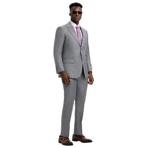 Experience elegance and versatility with the Men's Stacy Adams Sharkskin 3-Piece Stone Grey Suit. This sophisticated ensemble features a sharkskin jacket with a two-button front closure, notch lapel, and side vents for a classic look with added comfort. The interior French facing and three pockets offer practicality, while underarm sweat guards ensure all-day comfort. The double-breasted vest adds a formal touch with a solid texture and four-button closure, while the flat-front pants maintain a sleek silhouette with two back besom pockets and two front angled slip pockets for convenience. This suit is perfect for weddings, business meetings, or any occasion where you want to make a memorable impression. Choose Stacy Adams for a timeless blend of tradition and modernity.