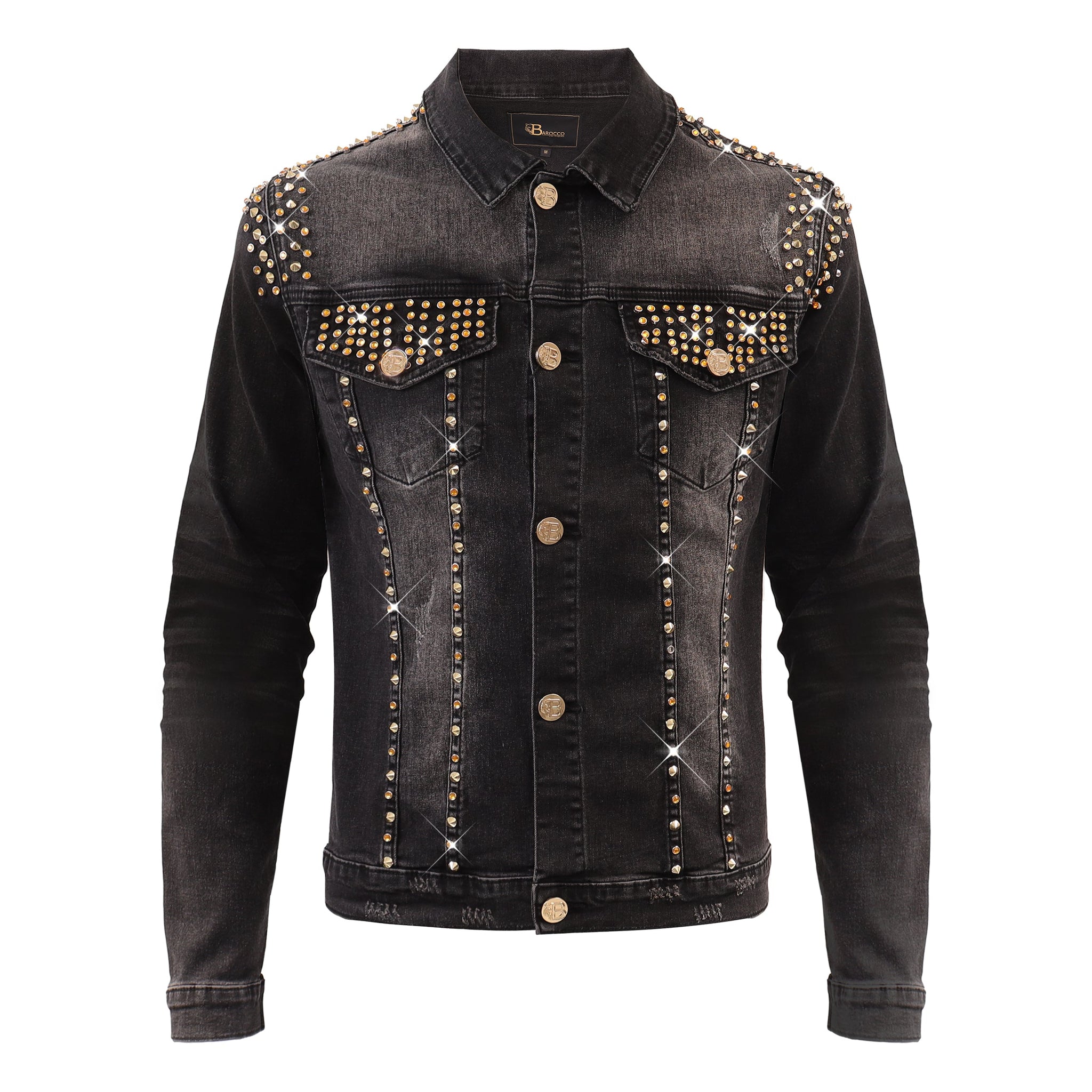 Step into the spotlight with the Street Glow – Smoke denim jacket—a bold, high-impact piece made for those who live to stand out. Covered in radiant rhinestones along the chest pockets, shoulders, and front panels, this jacket exudes a dazzling bling factor perfect for red carpets, nightlife, or runway-worthy moments.